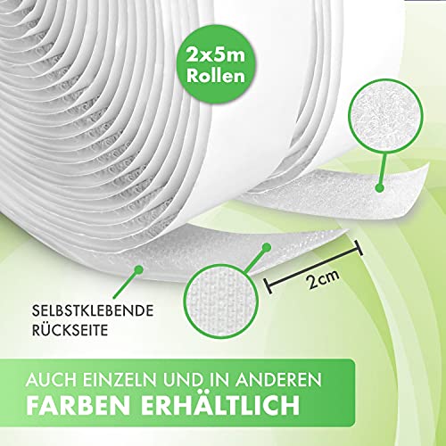 FrogJim nastro in pile e gancio autoadesivo bianco larghezza 20mm, rotolo da 5m di gancio e rotolo da 5 m di anello 20 mm adesivo KROW5