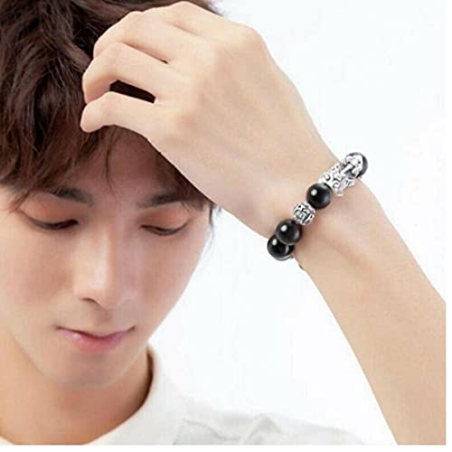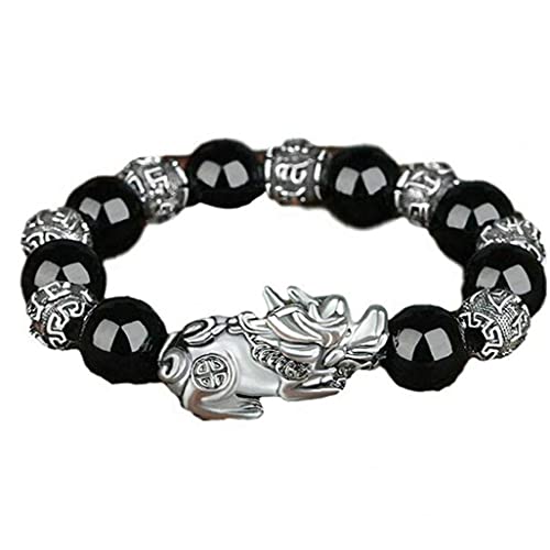Froiny Bracciale in Pietra Obsidian Bracciale Feng Shui Braccialetto Buddha Buon Luck Braccialetti Ricchezza per Unisex