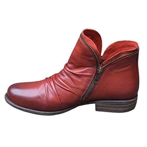 Frolada Stivali Corti Da Donna Scarpe Alla Caviglia Piatte Bootie Zipper Autunno Inverno Stivali Da Cowboy Scarpe Da Combattimento Stivaletti In Ecopelle Tacco Basso Rosso 36