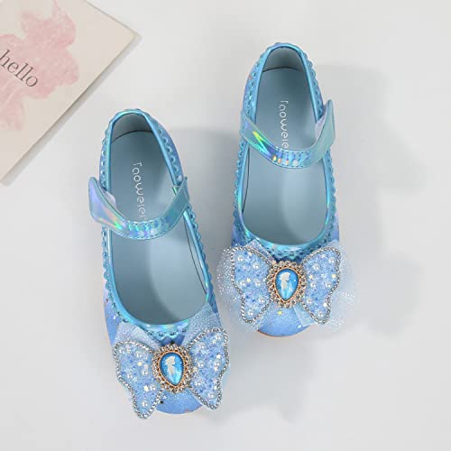 New front Ballerine Bambina Scarpe Principessa Eleganti Piatto in Pelle Scarpe da Principessa Eleganti Bambine e Ragazze per Partito e Carnevale,Blu,25