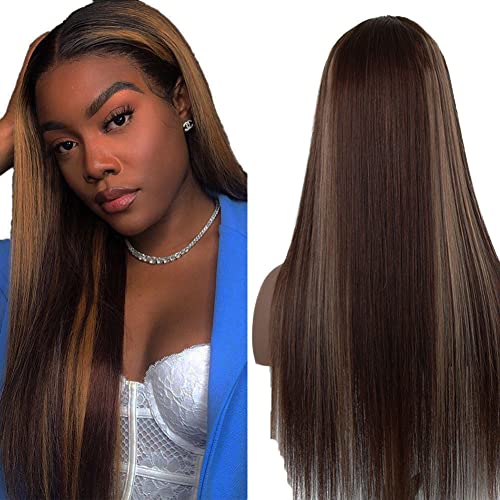 Parrucca con chiusura a parte libera 4 x 4. Materiale: 100% capelli umani, colore marrone evidenziato #P430, capelli umani brasiliani Remy, non cadono, nessun groviglio, morbidi e spessi, pieno, nessun odore. Struttura della parrucca con chiusura in pizzo
