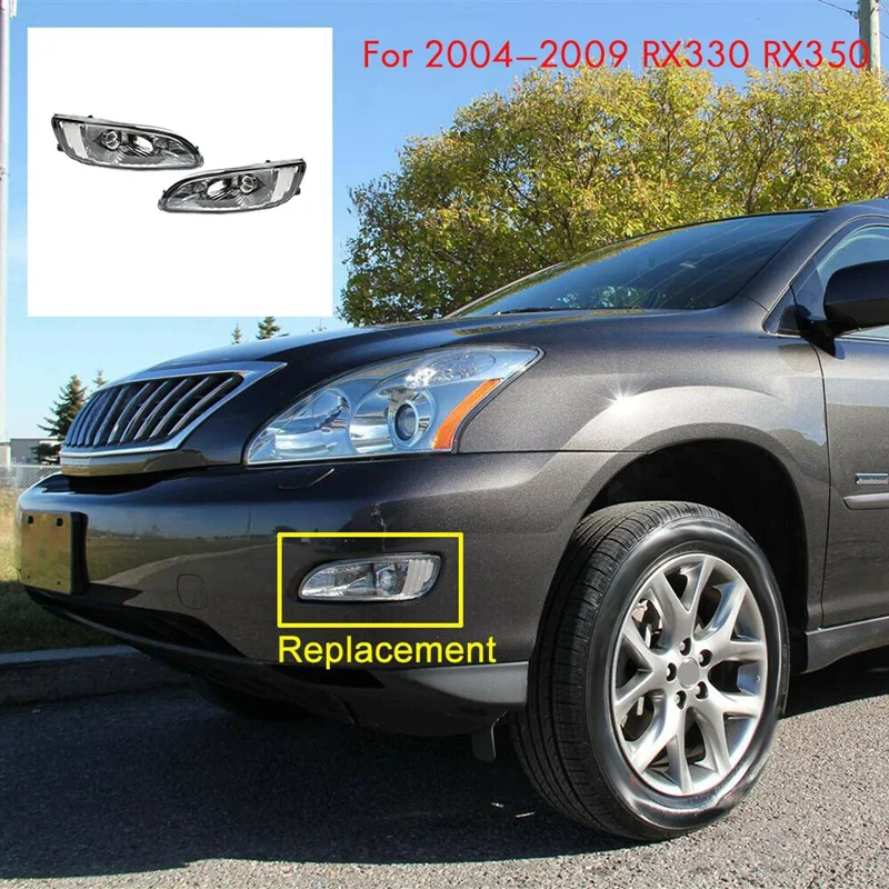 Pair Front Bumper Fog Light Clear Lens Driving Lamp Assembly for Lexus 2004-2009 RX330 RX350 81220-0E010 81210-0E010