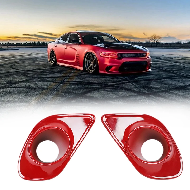 Car Red ABS Front Fog Light Lamp Decorative Cover Trim Fit for Dodge Charger 2015-21