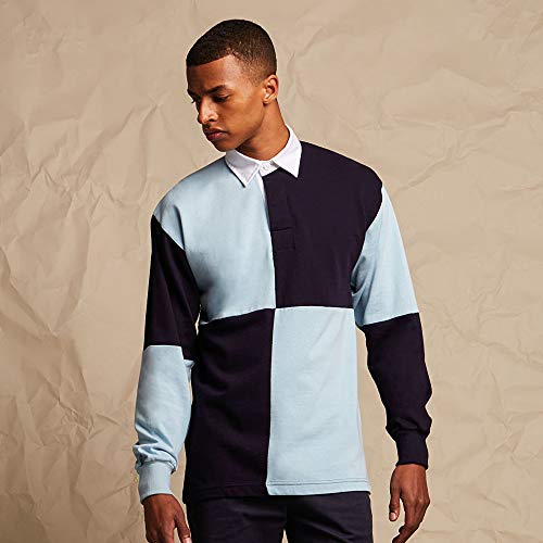Front Row - Polo Manica Lunga 100% Cotone - Uomo (L) (Bianco/Blu Navy)
