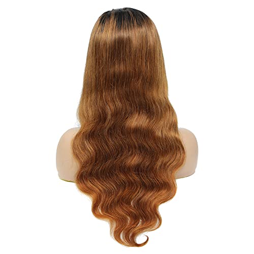 Body Wave Wig 4x1 Lace Front Wig Ombre Brown Human Hair Wig Human Hair With Baby Hair Highlight Lace Front Wig Human Hair Natural Black To Honey Blonde Lace Wig 130% Density 16 Inch