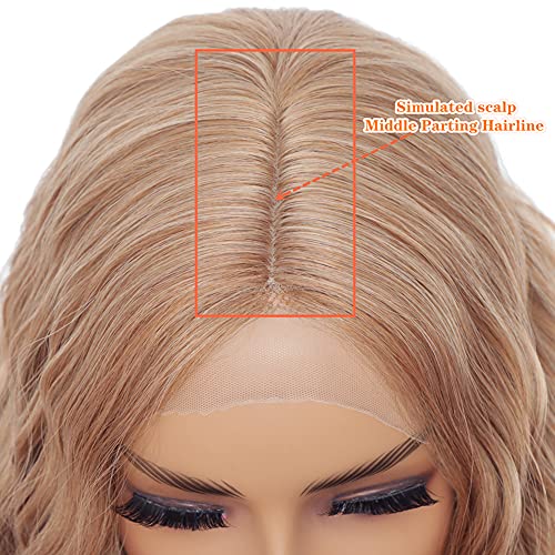 Sangrui Le parrucche frontali in pizzo biondo misto ondulato lungo sono realizzate in materiale di fibra sintetica resistente al calore di alta qualità, sembrano veri capelli umani. Il cuoio capelluto simulato di alta qualità rende impercettibile sulla pelle, sembra il tuo vero cuoio capelluto.