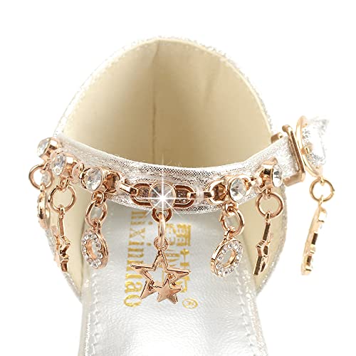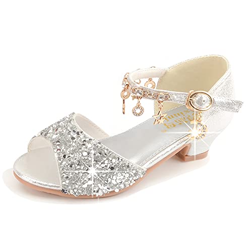 New front Ragazza Costume Sandali Sandali Partito da Ragazze con Paillettes Eleganti Glitter Scarpe da Principessa Scarpe Eleganti Bambina Scarpe Principessa Bambina Tacchi Argento 33