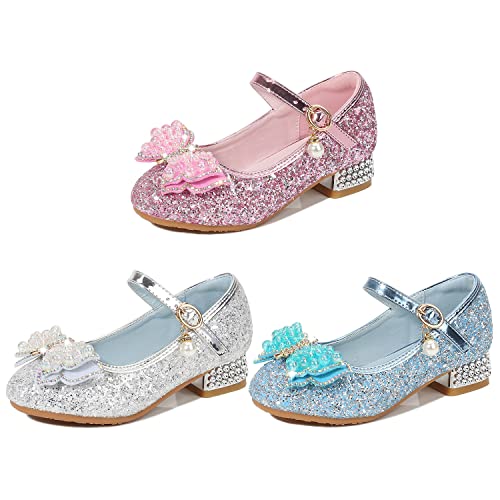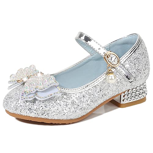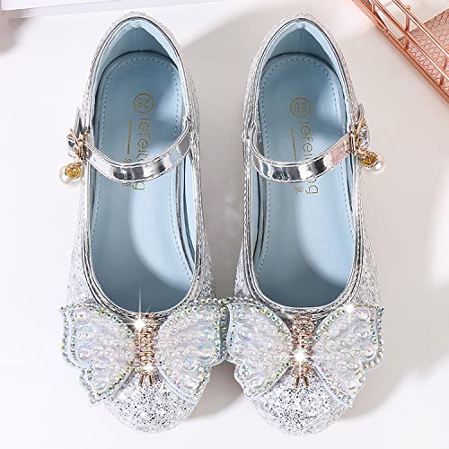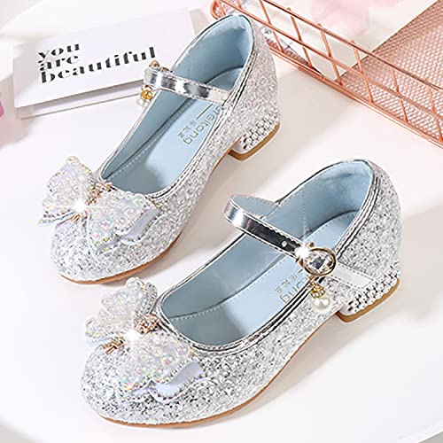 New front Scarpe da Principessa con Farfalla e Paillettes Eleganti Glitter Scarpe Eleganti Bambina per Cerimonia Festa Bambina Scarpe con Tacco Sandali Partito da Ragazze Argento 26