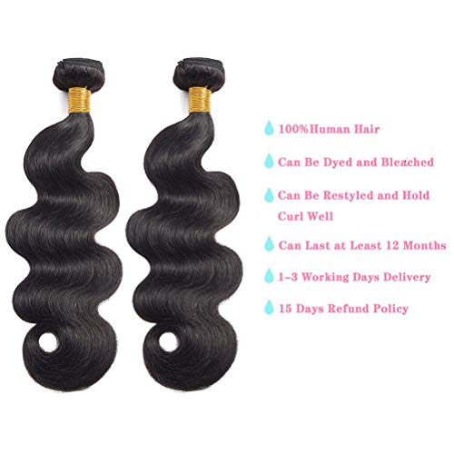 10A 13x4 Ear to Ear Lace Frontal Closure with Hair Bundles Brazilian Virgin Hair 3 Bundles Body Wave with Closure for Women Natural Black Color (14 16 18+14 inch)