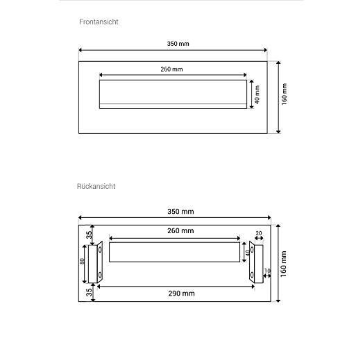 DIMENSIONI: frontale: 160 x 350 mm (AxL) -- Sportello: 40 x 260 mm (AxL) -- Conforme alla normativa europea EN-13724, adatto a buste C4