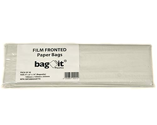 50 Film Fronted Baguette Paper Bags For Food Use 4 x 6 x 14 by Bag It Plastics