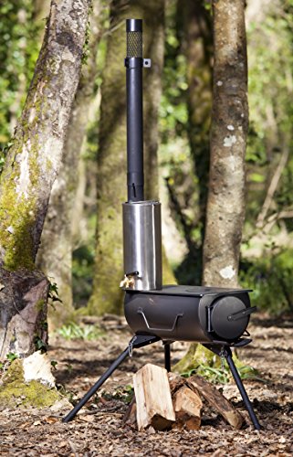 DWD Frontier ®, set da campeggio con fornello e bollitore da 2 litri con rubinetto in ottone e sacca da trasporto. Ideale per tenda, barca, casa, capanno, natura, iurta, spiaggia, tenetipi e per bollire l'acqua, cucinare e riscaldare l'ambiente. (Solo serbatoio dell'acqua).