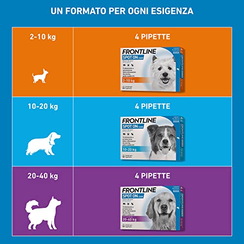 FRONTLINE Spot On, 4 Pipette, Cane Taglia L (20 - 40 Kg), Antiparassitario per Cani e Cuccioli di Lunga Durata, Protegge da Zecche, Pulci e Pidocchi, Antipulci In Confezione da 4 Pipette