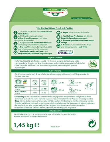 Frosch Aloe Vera Sensitiv-Detersivo in polvere (22 lavaggi), detergente completo combatte le macchie più ostinate per la purezza luminosa, 1,45 kg
