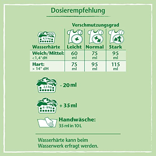 La formula con estratti di aloe vera pulisce la biancheria in modo particolarmente delicato sui colori e sui tessuti, garantisce un bucato morbido, puro e piacevolmente profumato