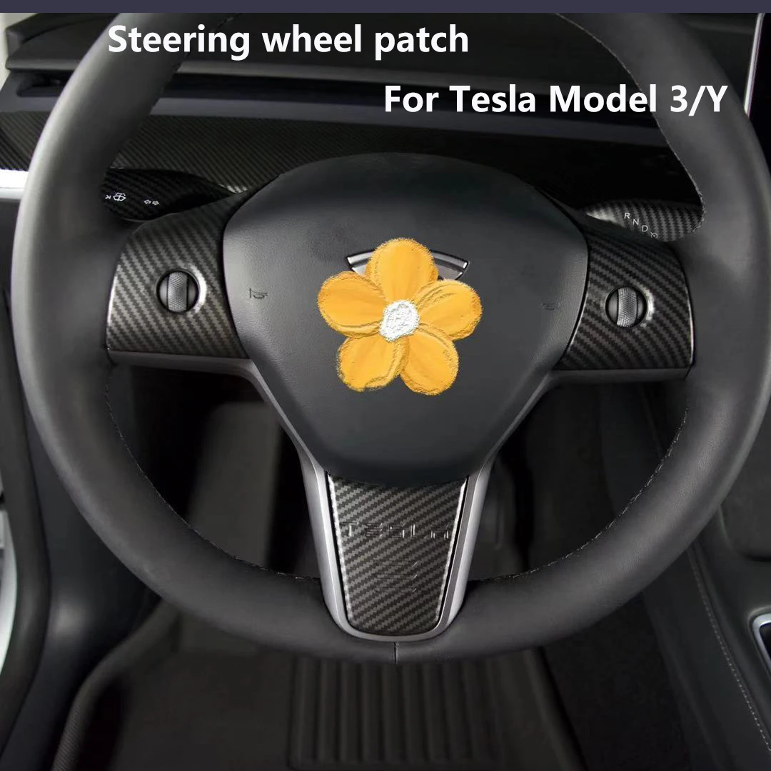 3pcs frosting matte finish Carbon fiber for Tesla Model 3 Steering wheel patch decoration Interior Modified Model Y accessories