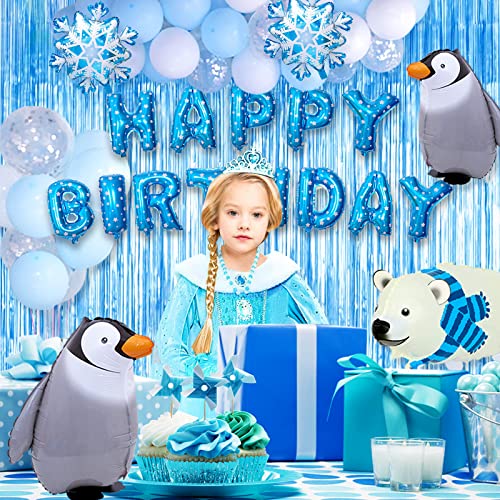 Frozen - Decorazione per feste di compleanno per ragazzi e ragazze, motivo: pinguino, orso polare, a tema palloncini, colore: blu e bianco, divertente decorazione di compleanno per bambini