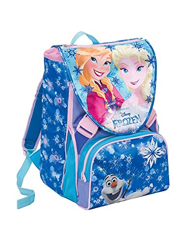 Zaino Sdoppiabile Frozen con pattine in poliestere resinato, schienale Ergosystem preformato con fondo integrato, spallacci imbottiti e rivestiti in tessuto e rete traspirante. Tre pattine calamitate con differenti espressioni, su pattina principale occhi olografici, inserti in fantasia allover, cursori personalizzati