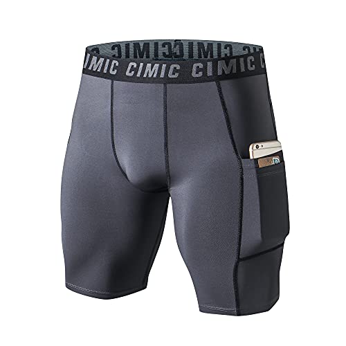 Frueo 3 Pezzi Pantaloncini a Compressione Uomo,con Tasca Pantaloni Running Uomo Leggins Uomo Pantaloncini da Fitness Pantaloni Jogging Running(0409) 3Gray-M