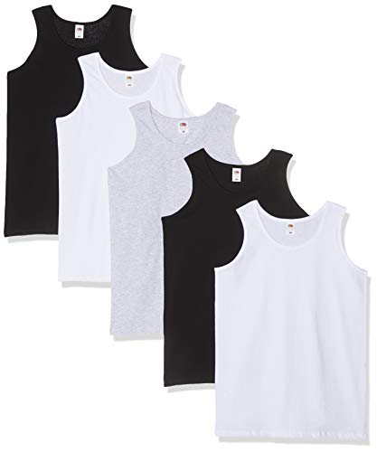 Fruit of the Loom 5-Pack Athletic Mens Canotta, Multicolore (White/Black/Heather Grey 30/36/94), XX-Large (Pacco da 5) Uomo