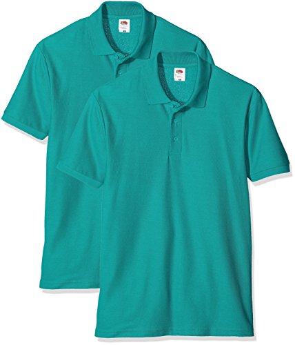 Fruit of the Loom 65/35 Pique Polo, T-Shirt Uomo, Confezione da 2, Turchese (Emerald), S