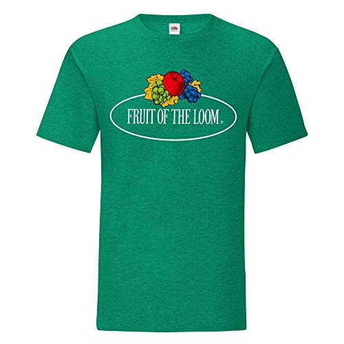 Fruit of the Loom - Maglietta iconica 150 con logo vintage sul petto, Verde bosco - Logo vintage grande, S