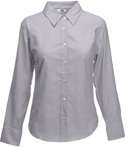 Fruit of the Loom Maglietta LS Lady-Fit Camicia, Grigio (Oxford Grey 114), S Donna