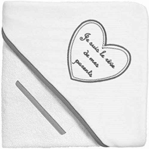 Bel colore: fantasia "grigio" con scritta ricamata: "J'aime papa et maman".