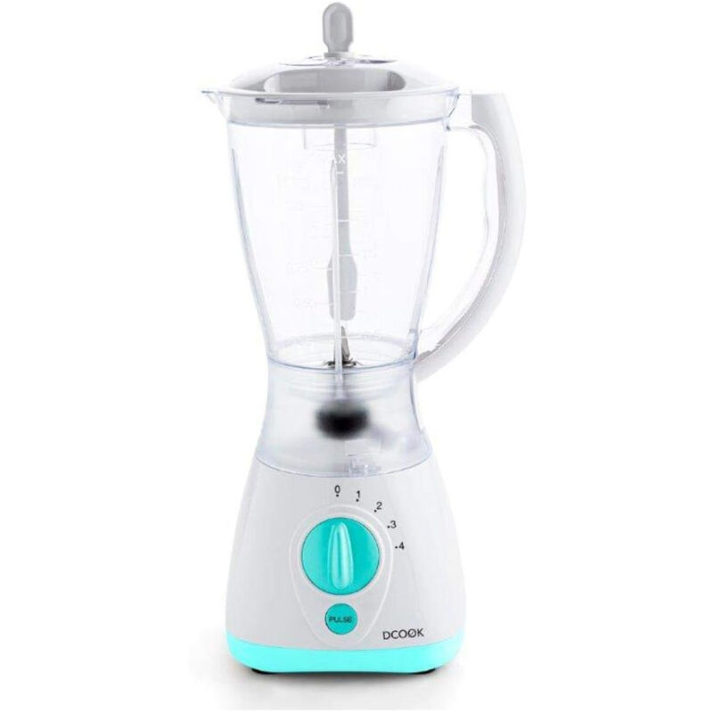 Con il frullatore a caraffa DCook potrete realizzare le migliori ricette con la giusta precisione. Ha 4 velocità e una capacità di 1,5 litri, per preparare tutti i tipi di creme, zuppe e frullati. Le sue lame trasversali in acciaio inox sono ideali anche per tritare il ghiaccio. Il frullatore è dotato di piedini antiscivolo, di un coperchio con un'apertura per riempirlo e di un'impugnatura per versare facilmente. Il suo design e le sue dimensioni compatte vi permetteranno di posizionarlo sul piano della cucina o di riporlo in un armadio con facilità. Scegliete questo piccolo elettrodomestico per la vostra vita quotidiana! Caratteristiche: - Dimensioni: 19,3x19,3x37,6 cm. - Materiali: PVC, acciaio inox. - Colore: bianco con dettagli blu. - Capacità: 1,5 L. - Potenza: 550 W. - 4 velocità. - Funzione turbo. - Sistema di blocco.