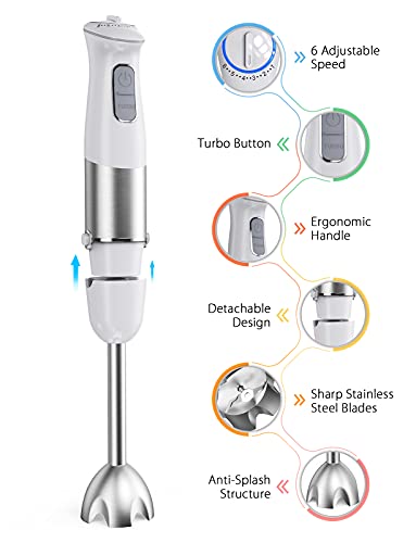 Frullatore a Immersione 2-in-1 Minipimer con Frusta, Mixer Cucina Multifunzione con Funzione Turbo, 6 Velocità Regolabili, 500W, Acciaio Inox per Fare Frullati, Purea, Pappe, ecc
