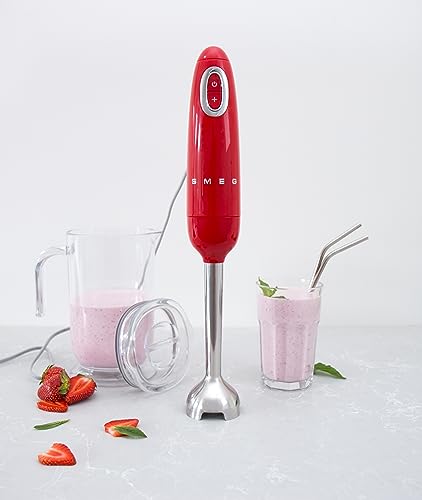 Smeg, Frullatore a Immersione HBF11RDEU, Funzione Turbo e Sistema di Taglio Flowblend, con Impugnatura Antiscivolo, Avvolgicavo Integrato, Accessori Non Inclusi, Potenza 700W, Rosso