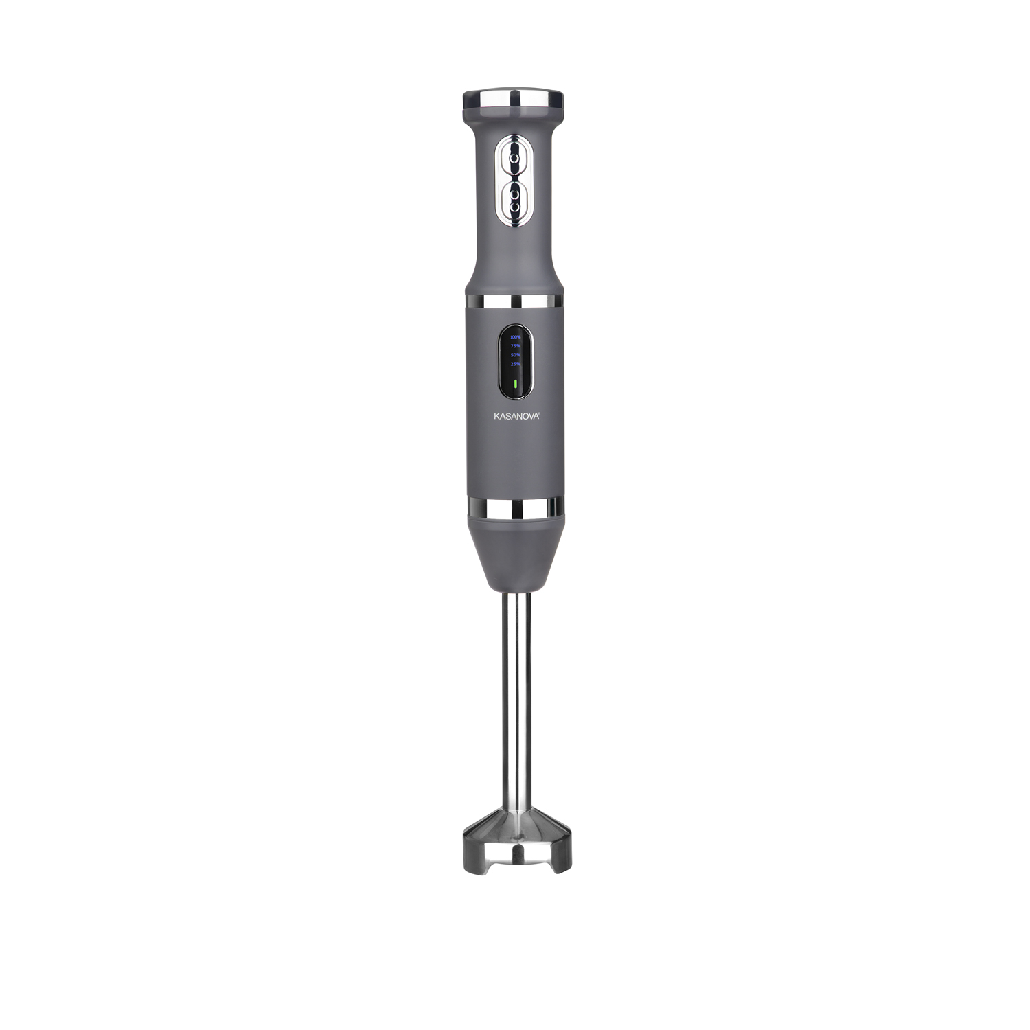 Gambo in acciaio inox: si immerge direttamente in pentole e contenitori senza sporcare i piani di lavoro. Rimovibile per una facile pulizia.