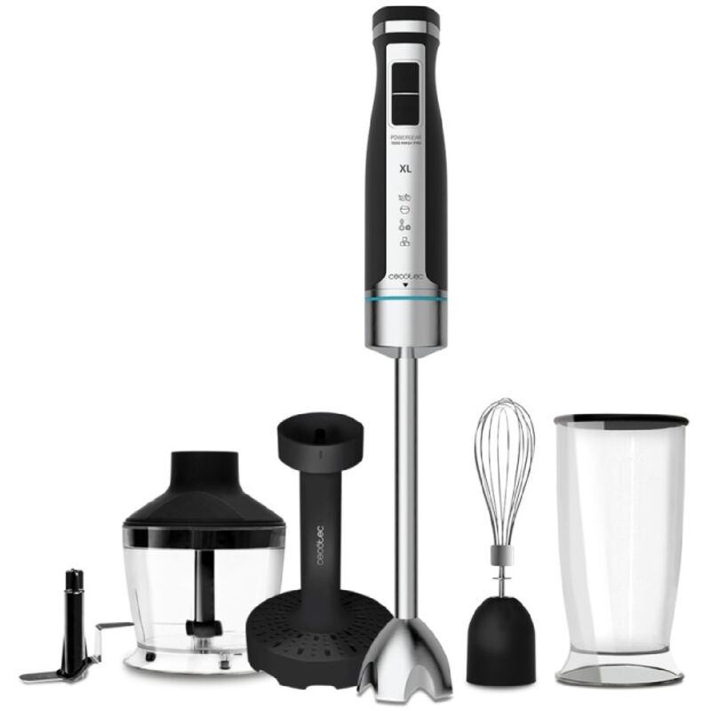 Sbattitore manuale Cecotec PowerGear 1500 - lame in rivestimento in titanio, 21 livelli di velocità, 1500 W, incluso vetro con coperchio. (Nero e acciaio inossidabile, XL Mash Pro)
