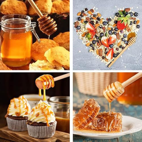 Frullatore per miele in legno, 4 pezzi, cucchiaio per miele, in legno, per matrimonio, compleanno, baby shower, Natale, feste, dessert, inodore e adatto per alimenti, 16 cm