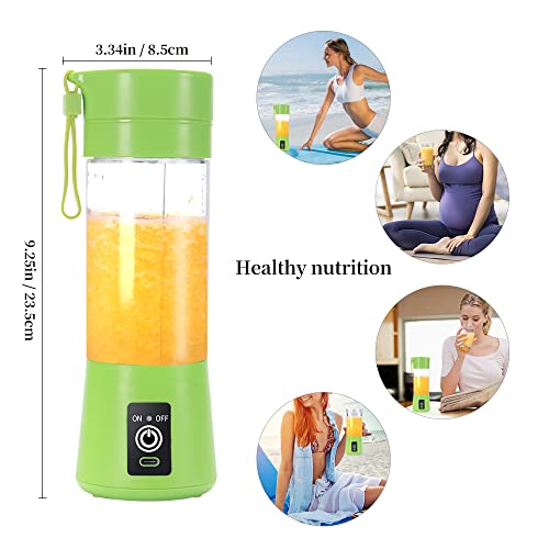 Frullatore Portatile,Mini Frullatore Elettrico Usb 380ml, con Filtro e 6 Lame in Acciaio Inox, Mini Frullatore Portatile per Frullati e Succhi, per Viaggi, Ufficio, Palestra, Famiglia (Verde)