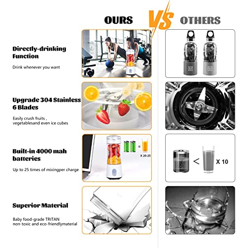 【Pronto per la ricarica e portatile】 Il frullatore portatile USB è dotato di una batteria integrata da 2*2000mAh, universalmente compatibile con tutte le porte USB, tra cui alimentazione mobile, computer, laptop e altri dispositivi USB, con una capacità di 380ml, peso leggero e dimensioni ridotte, adatto per il trasporto, adatto per attività indoor e outdoor, sport, viaggi, campeggio, lavoro.