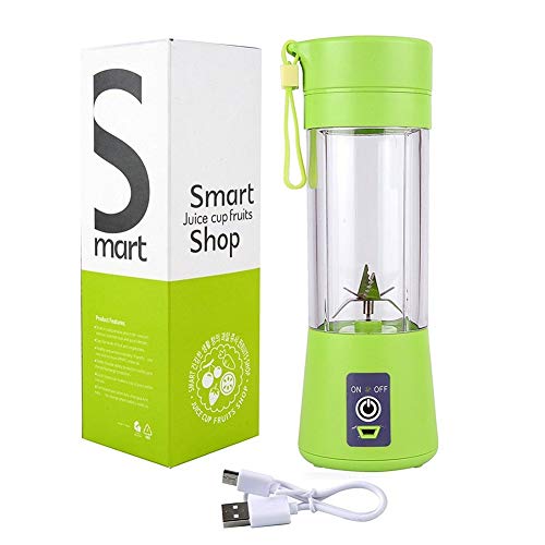 Frullatore Portatile Mini Frullatore,Elettrico con 6 lame per Frutta e Verdura Ricaricabile con USB, 380mL Blender con Bottiglia Portatile Mixer fare per succhi frullati (Verde)