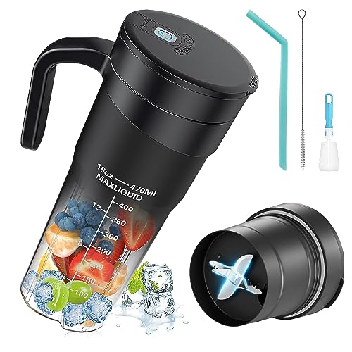 Frullatore Portatile KMVIZI, Frullatore Smoothie di Fresh Juice da 470ml con Batteria Ricaricabile da 4000mAh, Mini Frullatore con 6 lame affilate e Cannuccia in Silicone, Ideale per Viaggi e Casa