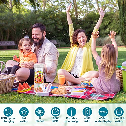 Frullatore Portatile, Mini Frullatore per Scuote e Frullati 400 ML Bottiglia Frullatore con Affilate 6-Lame Smoothie Maker per Cucina Palestra Ufficio Viaggi