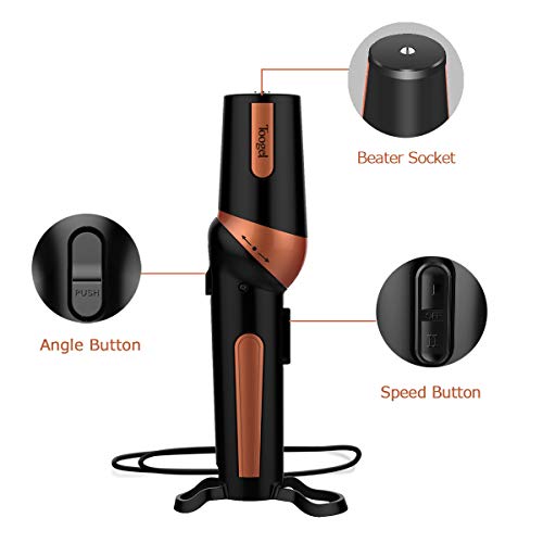 Alta potenza: ordinata con una potenza di 80 watt e due livelli di impostazioni della velocità, quindi si può utilizzare il frullino di torta per iniziare lentamente e finire velocemente, e mescolare i frullati o semplicemente frullare le torte, i succhi e i cioccolati.