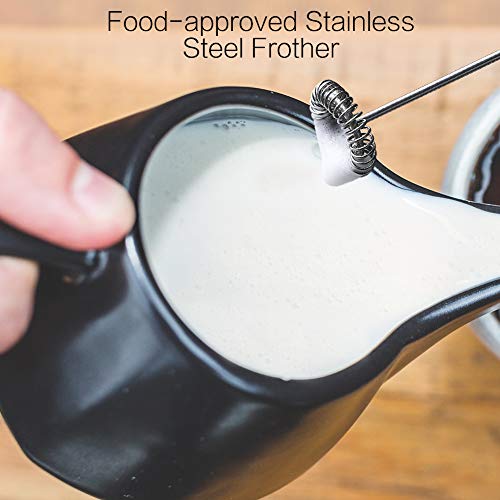 MULTIFUNZIONE: Un accessorio professionale e versatile che ti permette di creare una deliziosa schiuma di latte per adornare caffè e cappuccini, ma adatto anche per preparare cioccolata calda/fredda, latte aromatizzato, tè matcha, cocktail, panna e salse.
