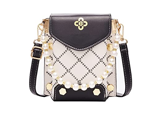 FRUMOASE Borsa a Tracolla da Donna Mini Borsa a Tracolla per Cellulare Borsa Piccola in Pelle PU Borsa con Sciarpa di Seta Bracciale di Perle - Nero