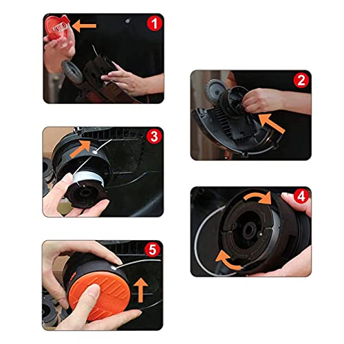 Facile da usare: le bobine di ricambio con sistema di alimentazione automatico possono essere facilmente sostituite senza attrezzi. È più sicuro e più risparmio di tempo rispetto all'avvolgimento manuale, riduce i danni del trimmer e non si blocca durante il taglio dell'erba.