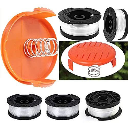 Frunimall Bobina di Ricambio per decespugliatore, 8 Pezzi di Ricambio per decespugliatore Automatico 6 Bobine di Ricambio 32,8 ft 0,065 Pollici+ Tappo a Bobina + Molla, per Black And Decker AF-100