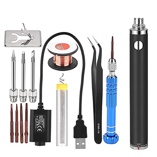 [Facile da usare] Il saldatore a batteria è più comodo da usare, non è disturbato dal cavo, viene fornito con un set completo di strumenti di saldatura, tra cui punta del saldatore, filo di vernice, pinzetta, cacciavite, punta per cacciavite, filo di stagno, supporto per saldatore. Per tutte le vostre esigenze di saldatura. Il suo peso leggero e le sue dimensioni ridotte lo rendono la scelta perfetta per principianti, professionisti e hobbisti.