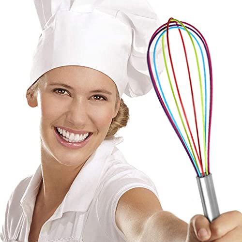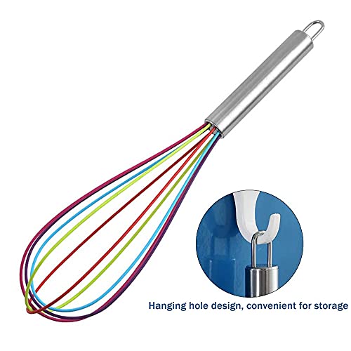 Materiali di Alta Qualità: Il frullino per uova a palloncino in silicone è realizzato in acciaio inossidabile di alta qualità e silicone, che non arrugginisce né cambia colore ed è sicuro da usare. Ci sono 3 fruste in silicone, molto adatte per cucinare in cucina.