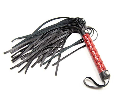 KuTi Kai - Frusta da equitazione, in pelle, 15,7 cm, Nero-Rosso