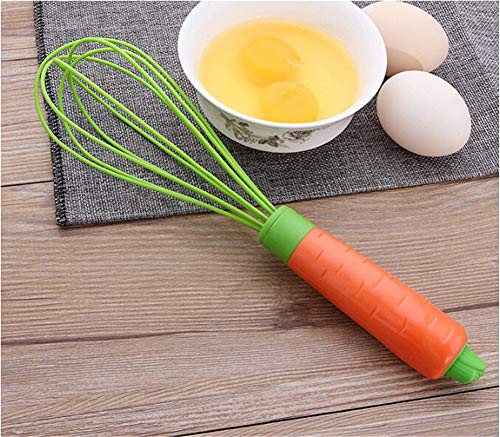 Frusta in silicone con manico in plastica riutilizzabile, frusta manuale da cucina, miscelatore per uova, manico a carota e squisita fattura, design grazioso