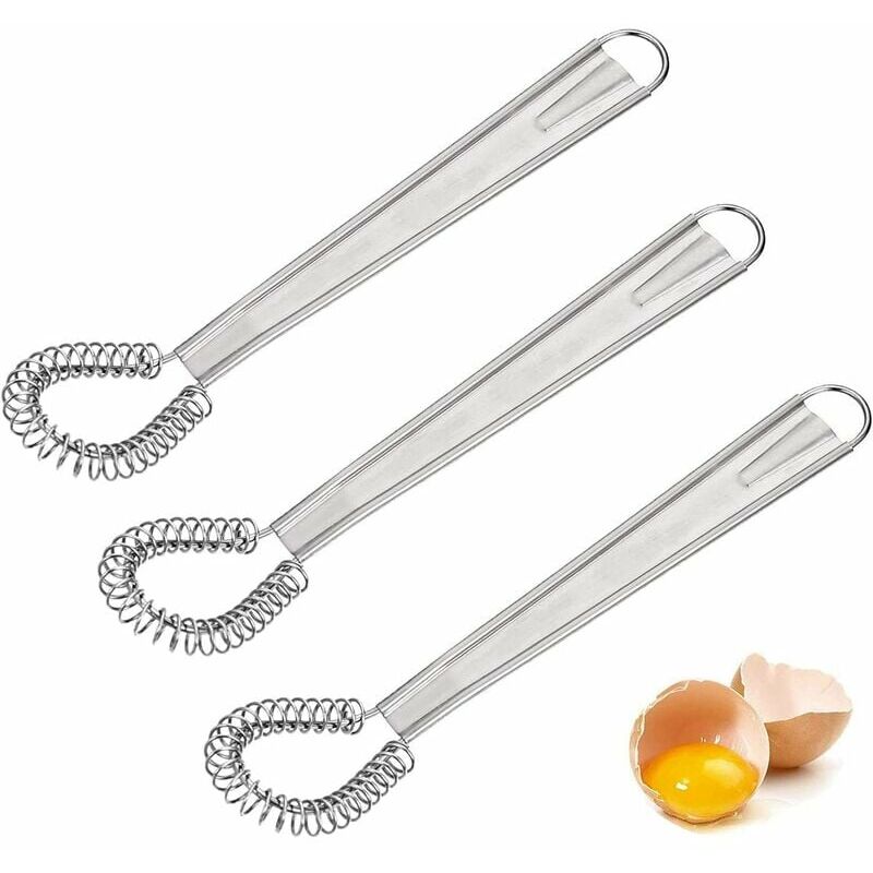 Caratteristiche: 1. Design a molla: circondato da molle, la distribuzione è uniforme e l'uovo liquido, il latte, la panna, ecc. vengono battuti in modo più uniforme, risparmiando tempo e fatica. 2. Leggero e pratico: non sono necessarie batterie, 10 volte più veloce di una frusta standard. 3. La coda ha un design con foro per appenderlo, comodo per appendere lo stoccaggio e il drenaggio, semplice e pratico. Specifiche: Materiale: acciaio inossidabile Colore: argento Dimensioni: 20,5 x 3,5 cm/8,07 x 1,37 pollici /> Peso: 69 g < br/> La confezione include: 3 agitatori a spirale