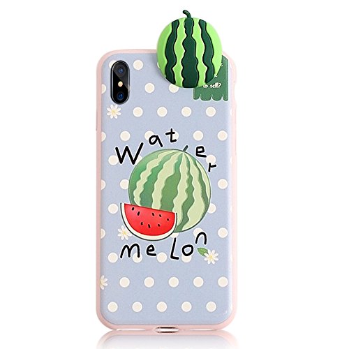 Frutta 3D Tridimensionale Silicone Cover Per Iphone X/Iphone 10,Vandot Creativo Handmade Bella Papa Lovely Carina Cartone Anguria Morbido Case Custodia Per Iphone X/Iphone 10 Guscio Morbido Sottile TPU Silicone Candy Colore Antiurto Calotta Anti-Scraches Skin Shell Per Iphone X/Iphone 10 5.8" Housing Protezione Bumper Case Flessibile Copertura Back Cover con Cartone Sollievo Modello Silicone Case Cover Anti-Scraches Copertura Shockproof Custodia